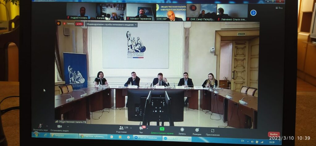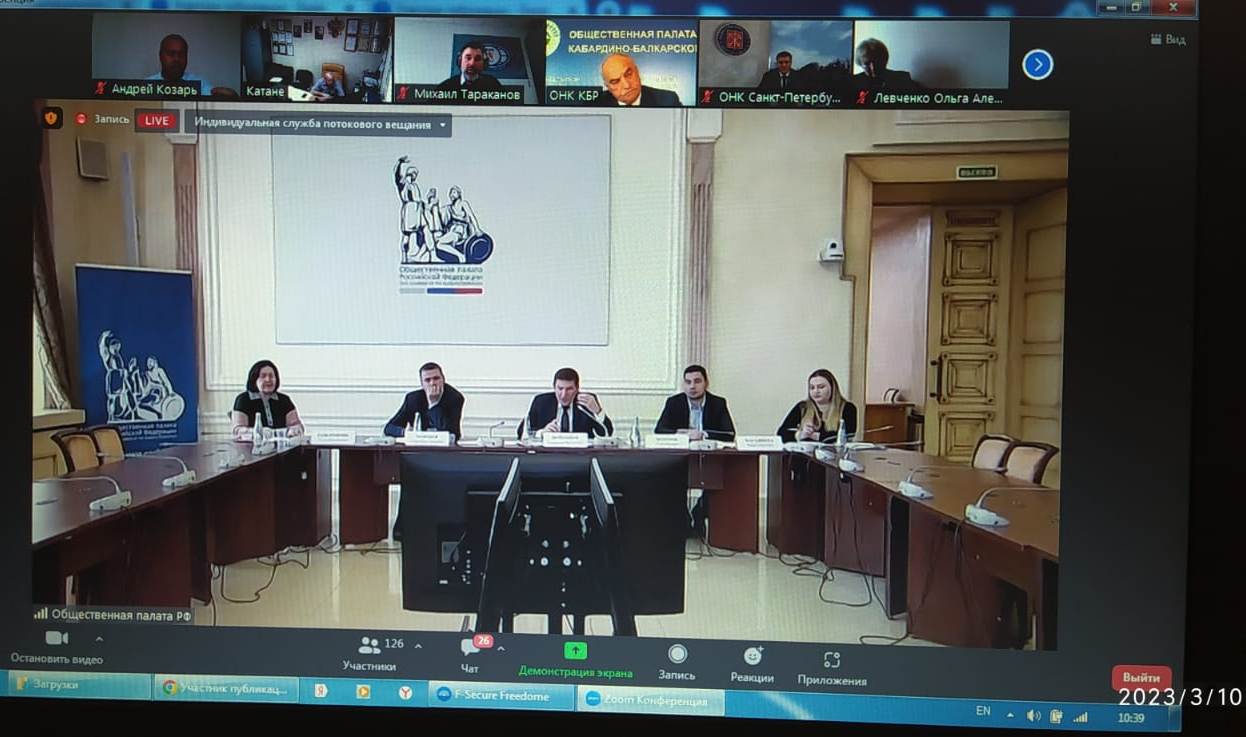 Заседание состоялось 10 марта в формате видео- конференц — связи, под председательством председателя Комиссии ОП РФ по безопасности и взаимодействию с ОНК Воронцова А.В. В