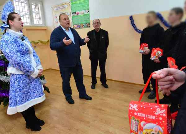В рамках визита для подростков было организовано новогоднее мероприятие с викториной и хороводом. Председатель ОНК Республики Крым Андрей Козарь и его заместитель Евгений Сусь обратились к детям с напутствующими словами и поздравили их с наступающим Новым годом, пожелали здоровья, добра, правильных и светлых мыслей и скорейшего освобождения. После чего ребятам вручили сладкие подарки.